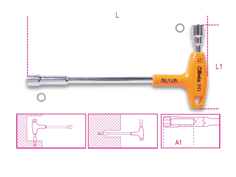 NATIČNI KLJUČ Hexagon/Bi-hex Z T ROČAJEM 941 12X12 BETA