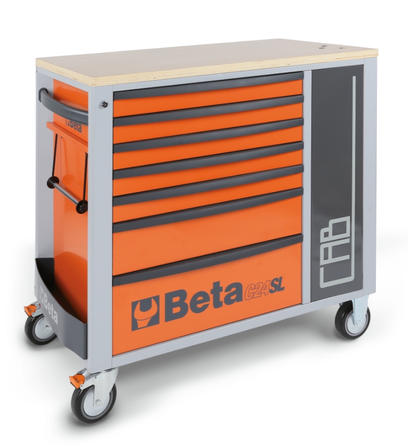 VOZIČEK ZA ORODJE Z DELOVNIM PULTOM IN OMARICO, ORANŽEN C24SL-CAB/O BETA