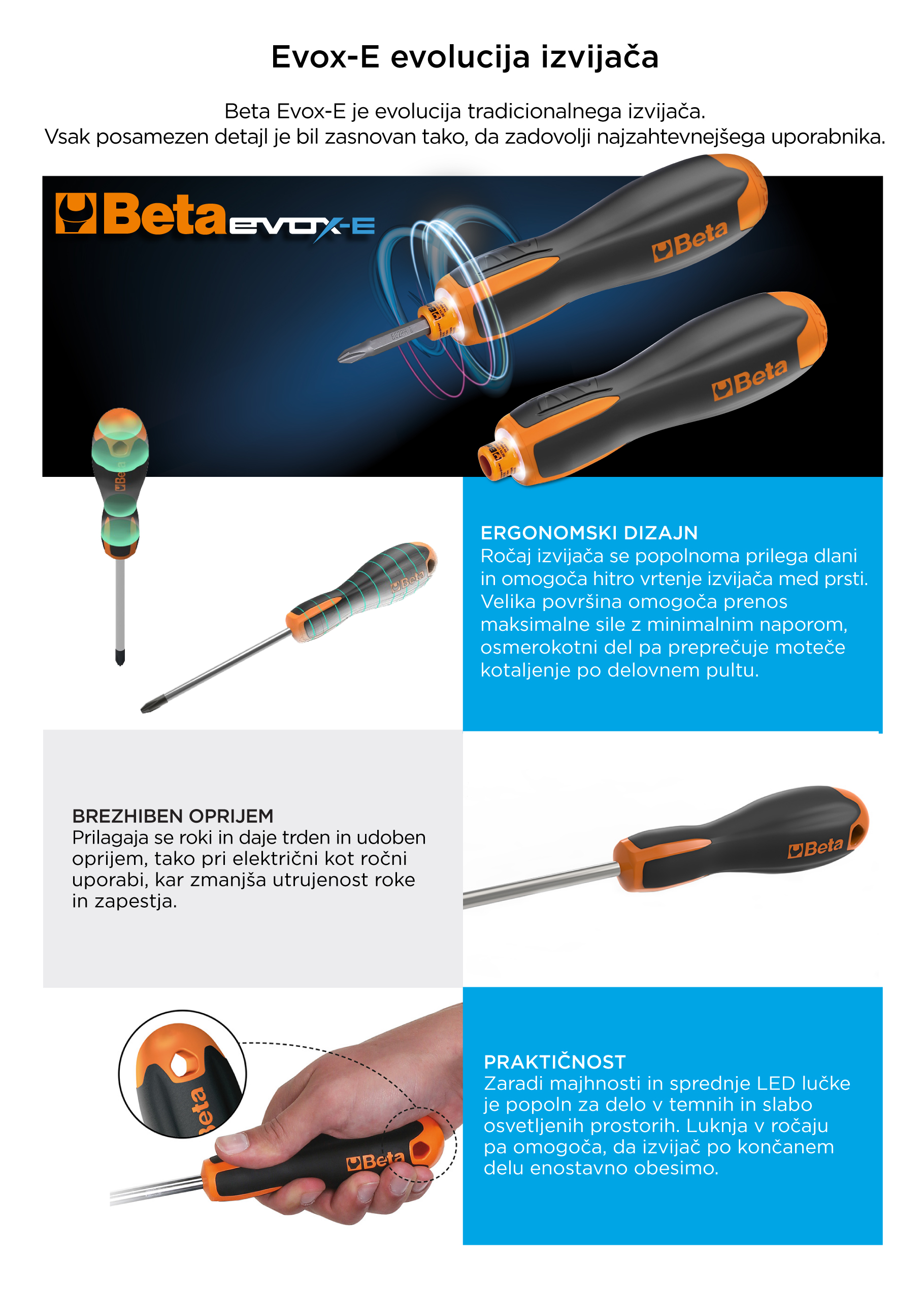 Beta Evox-E je evolucija tradicionalnega izvijača. Vsak posamezen vidik je bil zasnovan tako, da zadovolji najzahtevnejšega uporabnika.