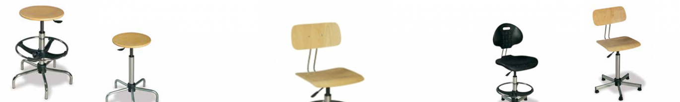 Zasnovani so tako, da zadovoljijo potrebe tistih, ki morajo delati v sedeči pozi z varnostjo in udobjem. Stoli s fiksnimi podstavki in vrtljivimi sedeži. Kovinska konstrukcija, sedež in naslon iz bukovega lesa.