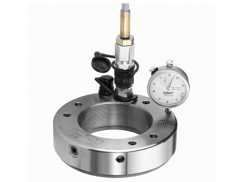 Srednji in veliki ležaji SKF s stožčasto izvrtino so pogosto nameščeni s hidravlično opremo. Orodja in tehnike SKF omogočajo nadzorovan in natančen način pravilne namestitve ležajev SKF, kar pomaga doseči dolgo življenjsko dobo ležajev. Uporabljene tehnike je mogoče uporabiti tudi za druge obročaste komponente, kot so zobniki in železniška kolesa.